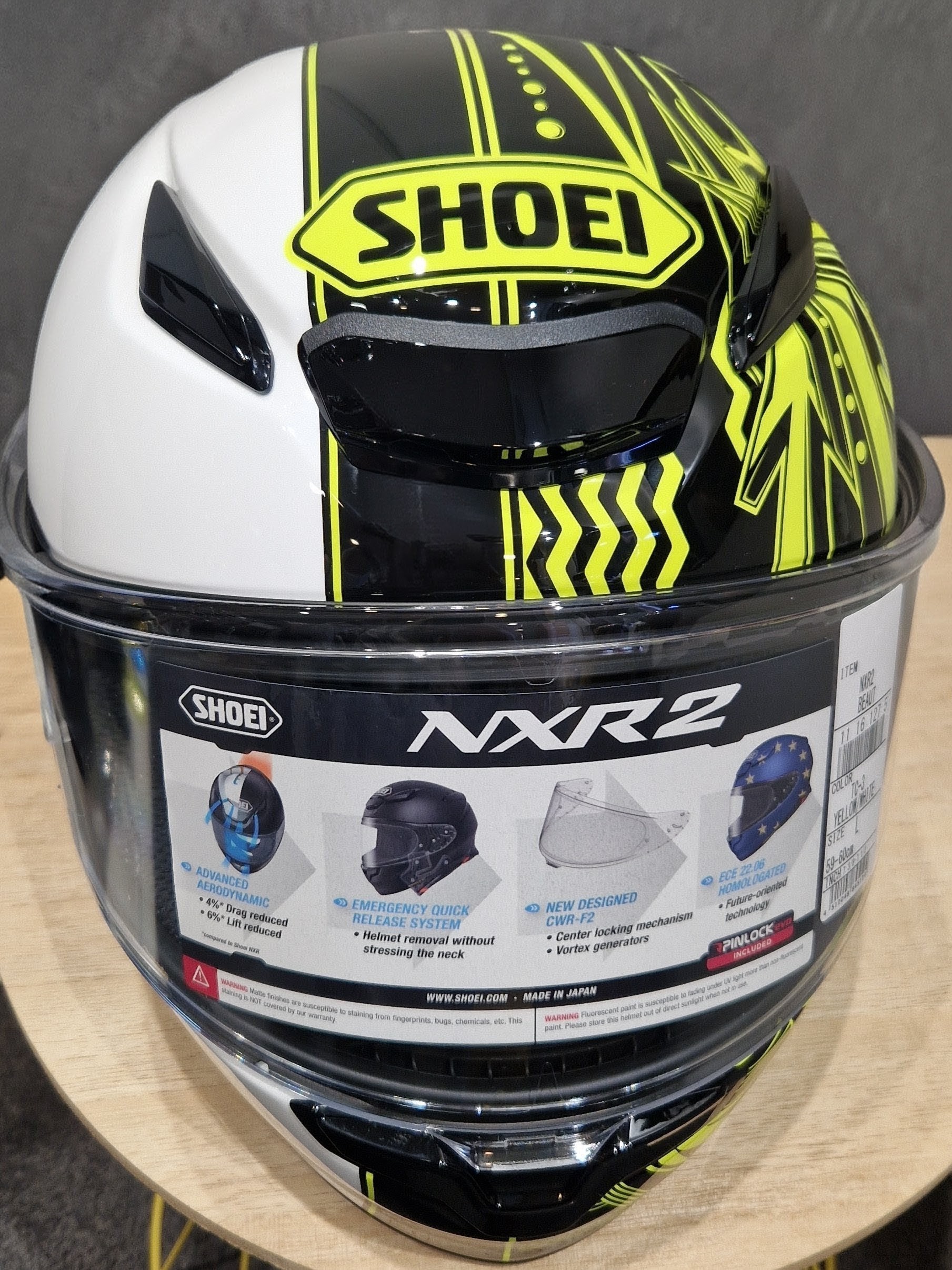 Plein de nouveautés comme une nouvelle calotte extérieure, un nouvel écran, un aérodynamisme encore plus poussé, une meilleure insonorisation, une finition toujours au top chez Shoei et surtout la nouvelle norme CE 22-06.